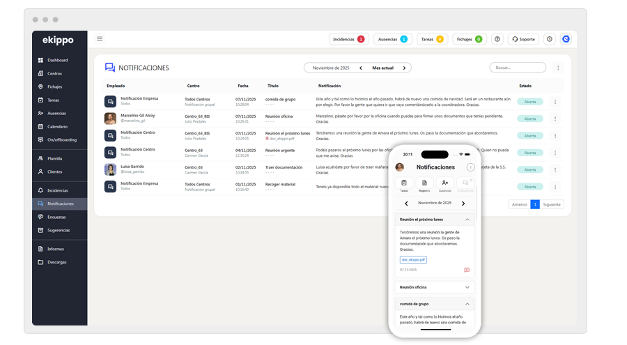 Manténte informado de todo lo que ocurre en tu empresa a través de los diferentes canales ayudándote a tomar las mejores decisiones.