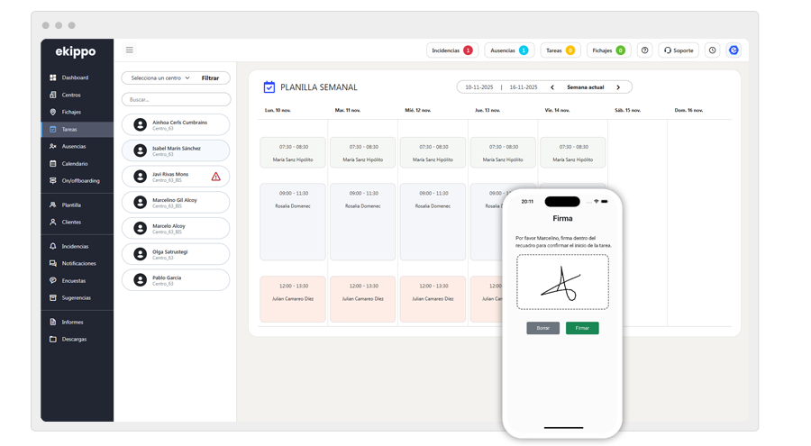 Evita desplazamientos innecesarios a la oficina para que puedan firmar sus documentos de entradas/salidas, jornadas mensuales, etc.