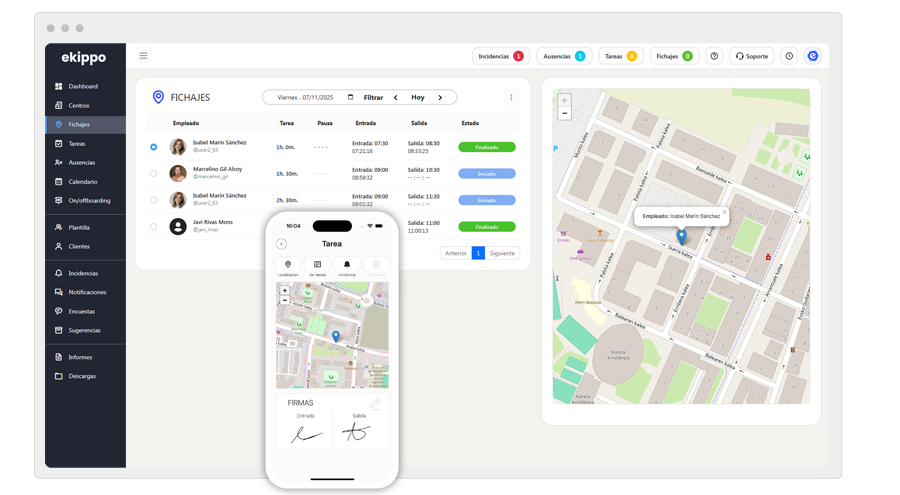 Toda la información de entradas y salidas de tu personal centralizada y accesible de forma cómoda y óptima desde tu panel de control.